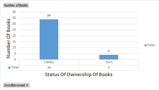Here’s another chart showing the number of books I read on the basis of their status of ownership.