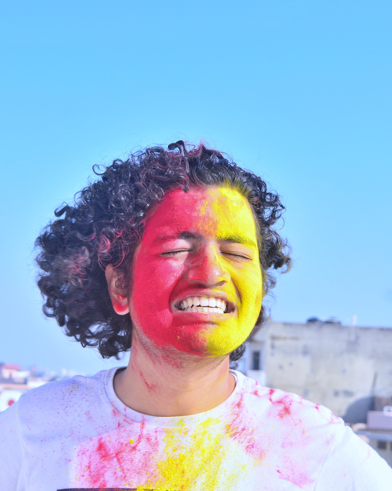 I visited one of my uncle’s house with my dad and sister. They weren’t playing holi that day. I regretted that we should’ve visited them any other day had we known about it.